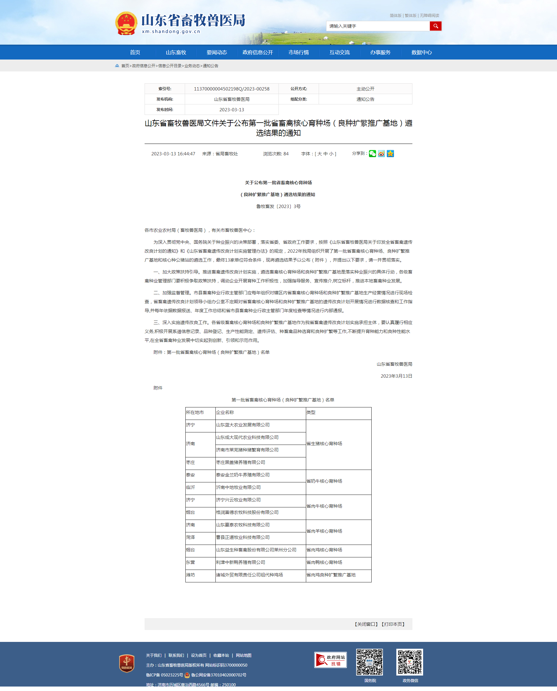 近日,山东省畜牧兽医局公布了第一批省畜禽核心育种场名单,济宁兴云牧业有限公司名列其中,这是继嘉祥县种羊场获评国家级肉羊核心育种场后,嘉祥县畜禽种质资源保护开发方面取得的又一省级荣誉。