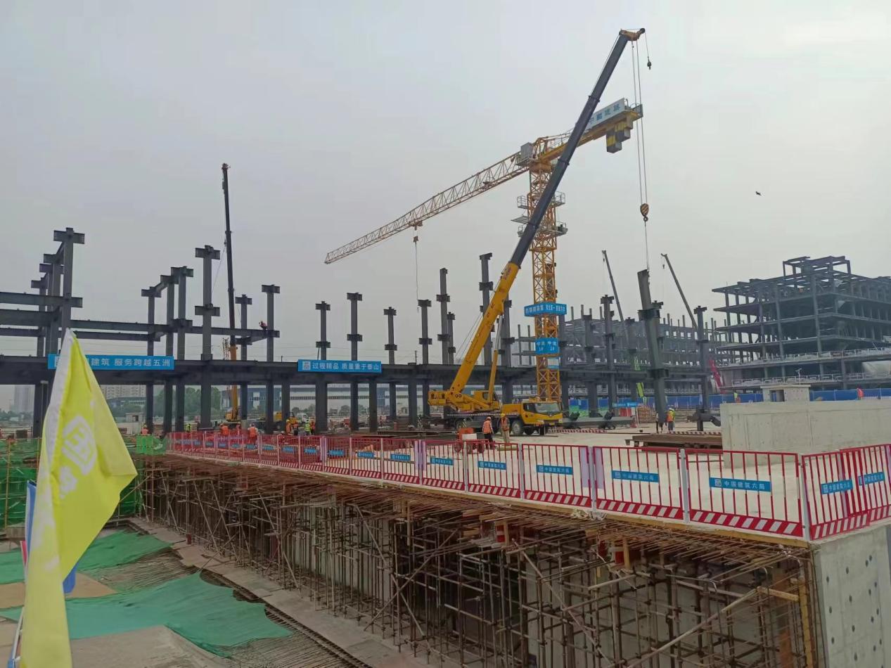 钢结构安装情况:一节钢柱,一节钢梁已全部安装完成;二节钢柱已全部到场,已安装30支,二节钢梁到场48支,已安装18支。