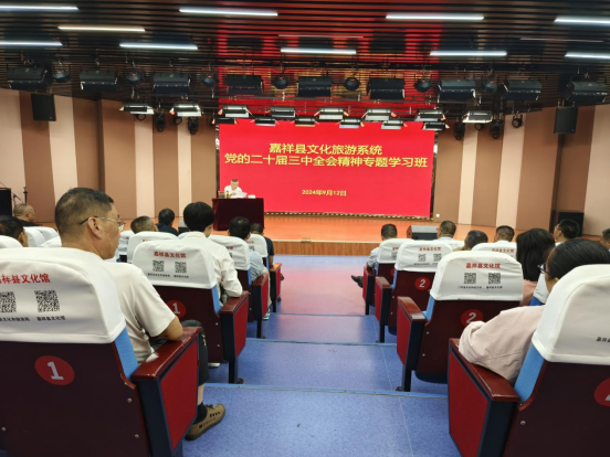 报告会上,孙有科同志紧紧围绕深入学习贯彻党的二十届三中全会精神,深入学习领会习近平总书记在全会上的重要讲话精神,结合当前经济形势和嘉祥文旅工作实际,对全会的重大意义和重要成果,以及抓好全会精神贯彻落实等方面,进行了深刻阐释和全面解读。