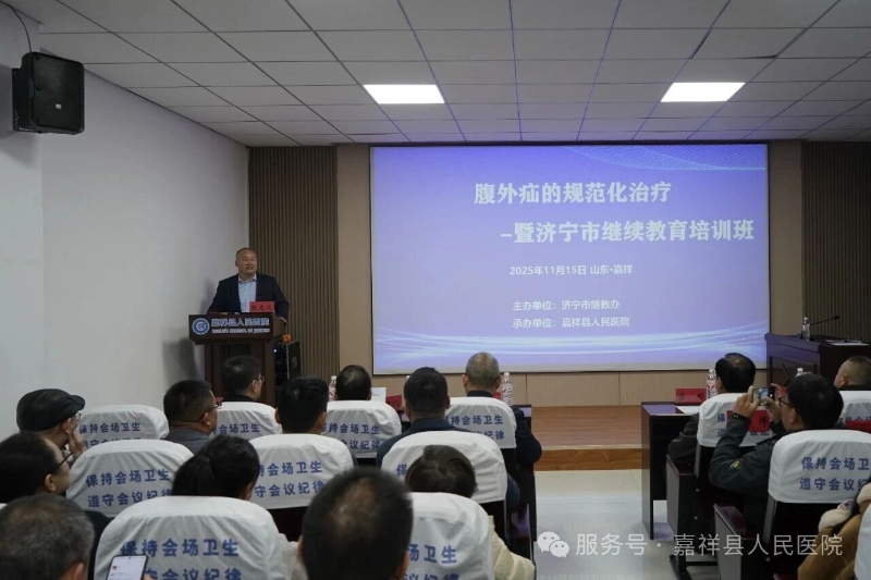 2025年11月15日上午,由嘉祥县人民医院主办的“腹外疝的规范化治疗培训班暨济宁市继续教育培训班”在院科教中心会议室圆满召开。本次培训聚焦腹外疝诊疗领域的前沿进展与规范操作,吸引了全县各医疗卫生机构相关专业临床医务人员踊跃参与,为基层医疗同仁搭建了高效务实的学术交流平台。