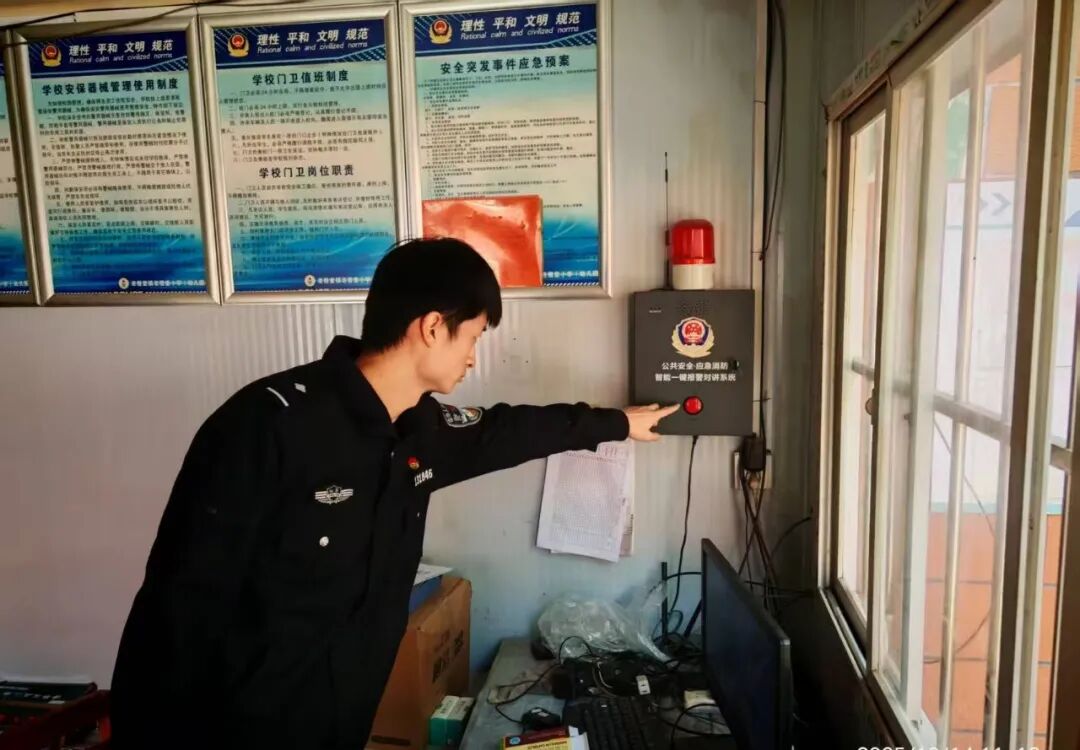 为全力做好护学岗工作,嘉祥公安定期组织警力深入辖区开展校园安全隐患排查,对校园内部安全管理制度、防范措施、防护装备等人防、技防、物防落实情况进行逐一检查,及时发现、剔除各类风险隐患,同时现场对校园内安保器材、一键报警系统的规范使用进行培训指导,为构建“平安校园”提供坚实基础。