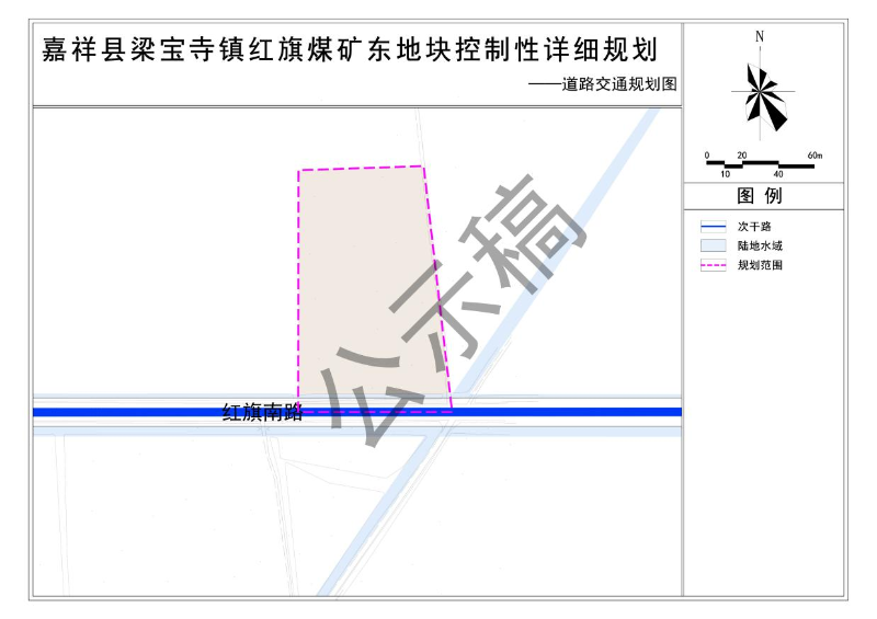 规划范围内道路为城镇次干路一个等级,红旗南路为城镇次干路,道路红线宽度16米。