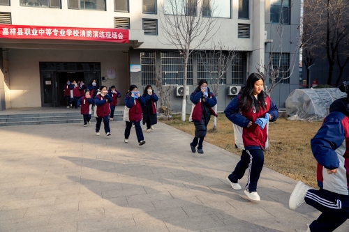 上午9点30分,警报声骤然响起,演练正式开始。嘉祥县职业中专参演师生迅速进入应急状态。在疏散引导员的指挥下,宿舍楼内的学生们用湿毛巾捂住口鼻,弯腰低姿,沿着预定的疏散路线,快速、有序地从各楼层撤离至指定的室外安全区域。整个疏散过程紧张有序,用时短、效率高,充分展现了师生们良好的应急反应能力和日常训练的扎实成效。