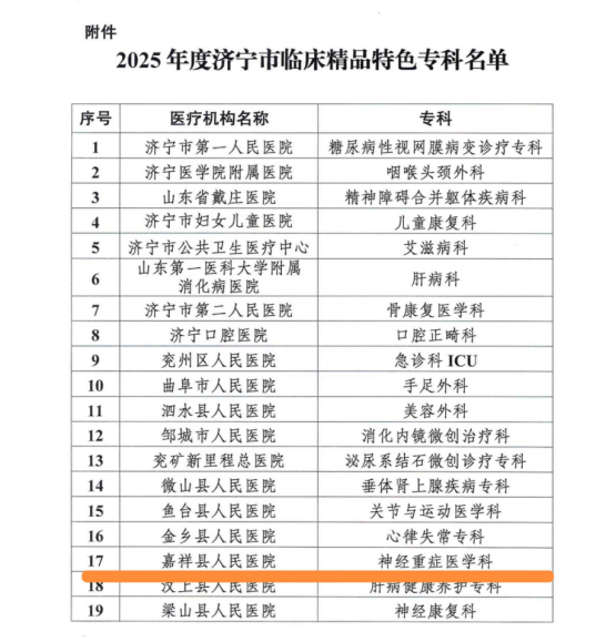 “济宁市精品特色专科”的荣誉,既是一份沉甸甸的肯定,更是一道催人奋进的号角。它象征着嘉祥县人民医院神经外科的学科建设达到了新的高度,也意味着更大的责任与担当。