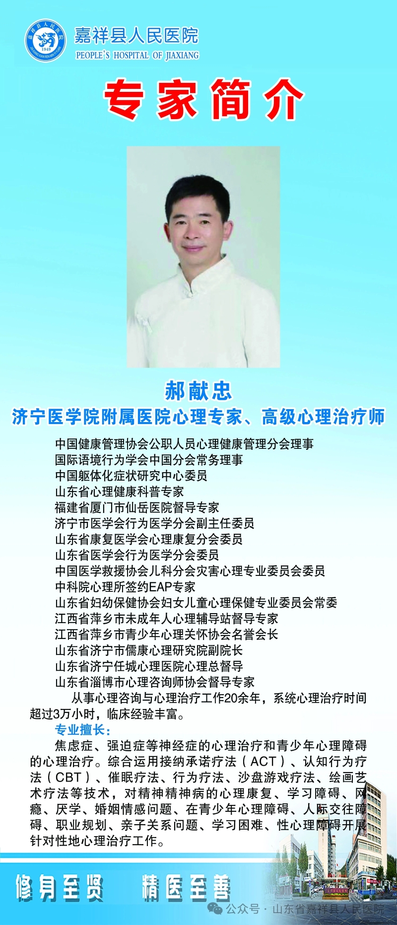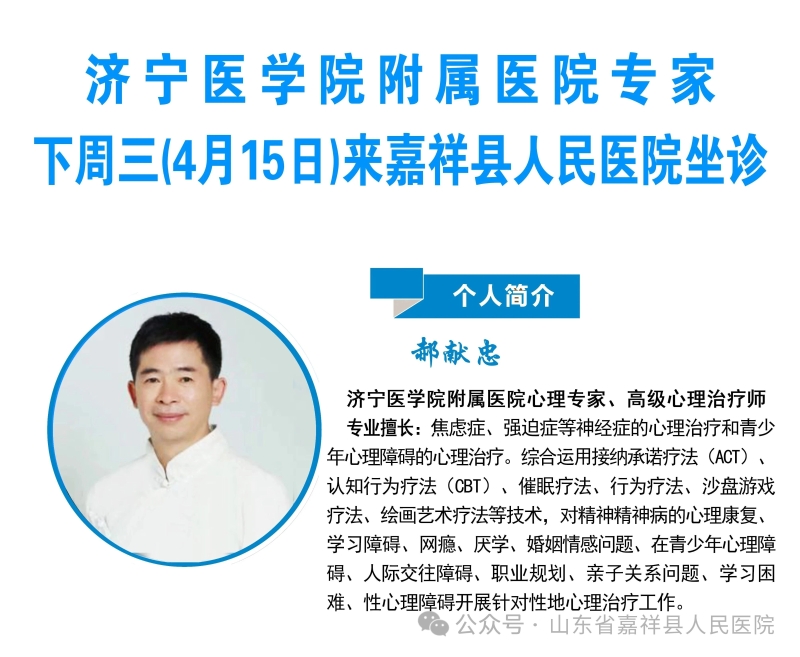 专家简介坐诊时间:4月15日坐诊科室:心理咨询门诊预约挂号:请挂心理咨询门诊孙天池专家号预约电话:0537--6811120
