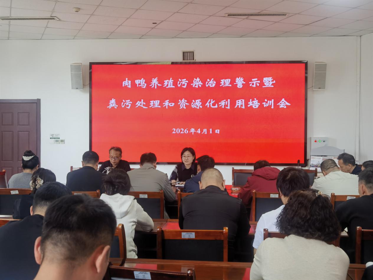 此次会议采取警示教育+技能培训的方式,通过传达通报多起不同省份畜禽养殖污染典型处罚案例,以案释法解读《中华人民共和国水污染防治法》《畜禽规模养殖污染防治条例》等法律法规,明确违法排污、乱堆乱放粪污等行为的法律责任,警示养殖场户要切实履行环保主体责任,摒弃侥幸心理,全面自查,严禁污染行为。培训环节重点围绕肉鸭绿色养殖、粪污源头减量、过程控制、末端利用等关键技术进行系统讲解,要求全县肉鸭养殖场科学进行养殖、合理处置粪肥,实现养殖发展与生态保护协同推进。