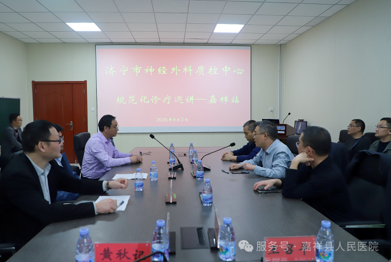 为进一步提升区域神经系统疾病诊疗水平,规范临床诊疗行为,强化医疗质量与安全控制,2026年4月3日,由济宁市第一人民医院神经外科、济宁市神经外科质控中心主办,嘉祥县人民医院承办的济宁市神经系统疾病规范化诊疗巡讲——嘉祥站,在嘉祥县人民医院科教中心会议室顺利召开。来自济宁市神经外科质控中心各成员单位的40余名业内代表齐聚一堂,共话神经外科诊疗规范,共享学术前沿成果。